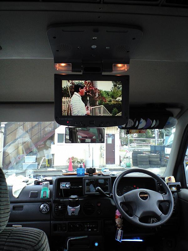 | 後席に8インチフリップダウンモニター取付 これも中国製・・・まあまあの出来です。 |